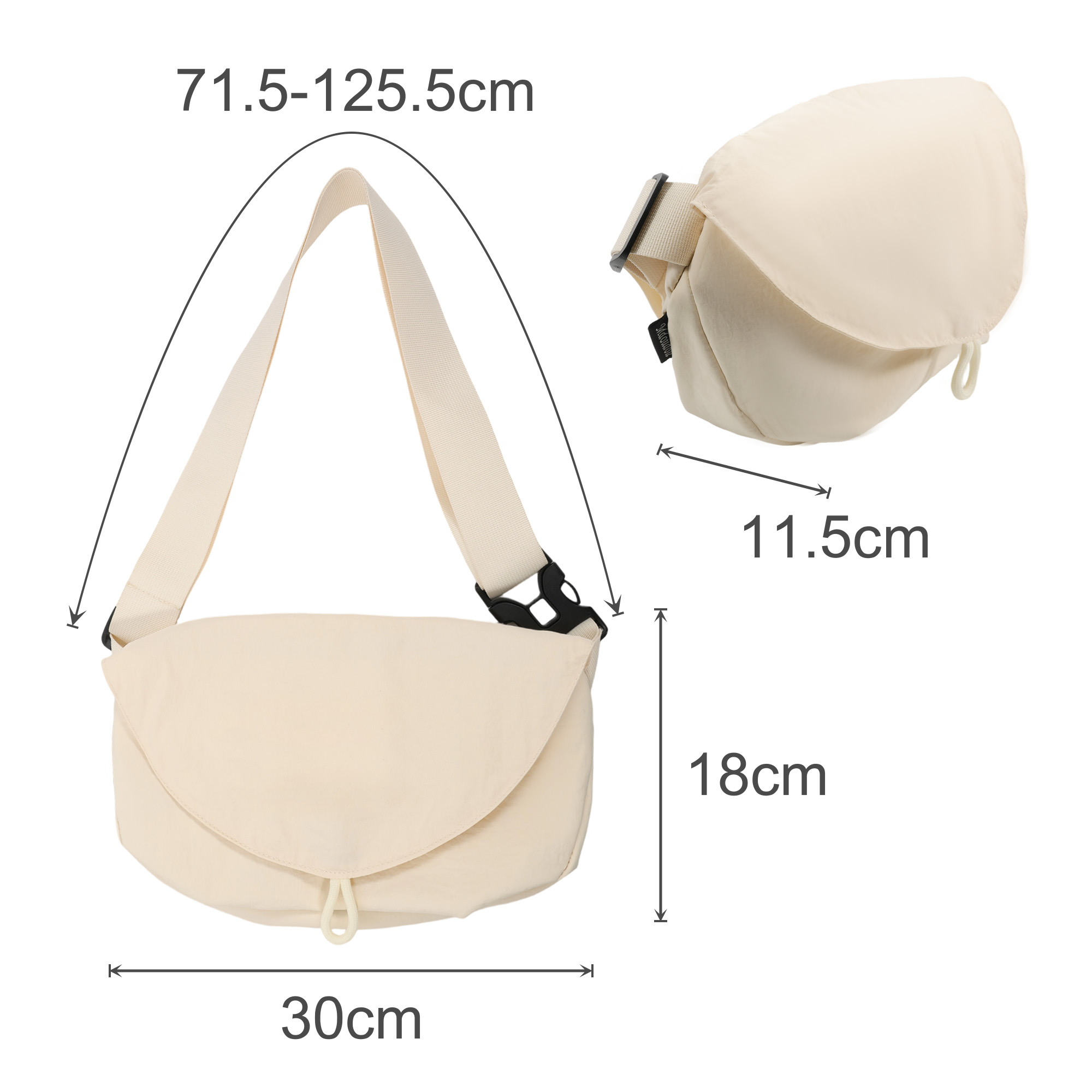 Stay casual and stylish with our Casual Crossbody Bag! Crafted from Nylon, this bag is lightweight and sturdy, featuring a spacious main compartment with a magnetic snap and a key holder and a back zipper pocket for essentials. The adjustable shoulder strap and top handle offer multiple carrying options. With full colour heat transfer and a woven label on the back to showcase your design, this bag is available in 5 colours. Sizing: 30cm w 18cm h 11.5cm d Adjustable strap: 71.5-125.5cm. Materials: Nylon. Print Position: Front/Back. Price includes: 3week Woven Label. 3week. Setup is included.